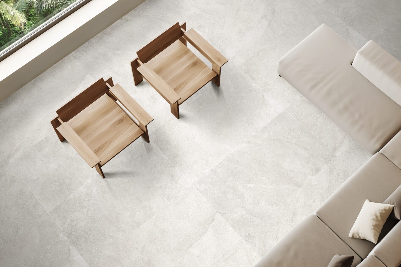 A limestone floor tile in beige tones can visually expand a room by reflecting light gently across the surface. This makes it particularly effective in entryways, living rooms, and kitchens where brightness and continuity matter.